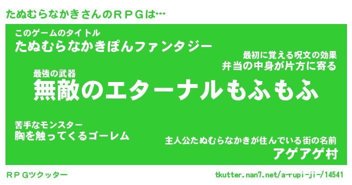 | 伝説のあだ名 | 『封印されし傭兵たぬむらなかき』 |