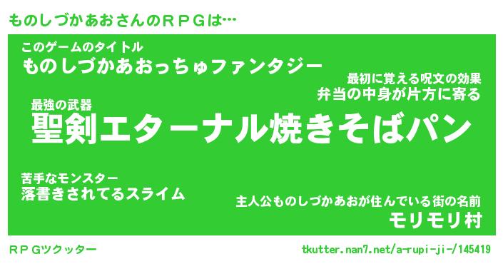 | 胡散臭い通販商品みたいなあだ名 | 『必ず成功する水晶球…その名も「ものしづかあお」』 |