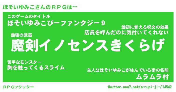 | 胡散臭い通販商品みたいなあだ名 | 『必ず成功する霊験あらたかなお札…その名も「ほそいゆみこ」』 |