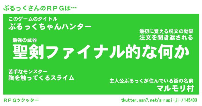 | 男性向けラノベタイトル風あだ名 | 『ぶるっくの憂鬱』 |