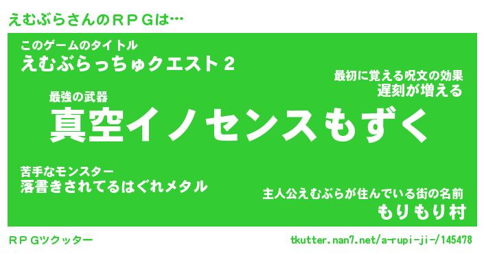 | 伝説のあだ名 | 『封印されしスナイパーえむぶら』 |
