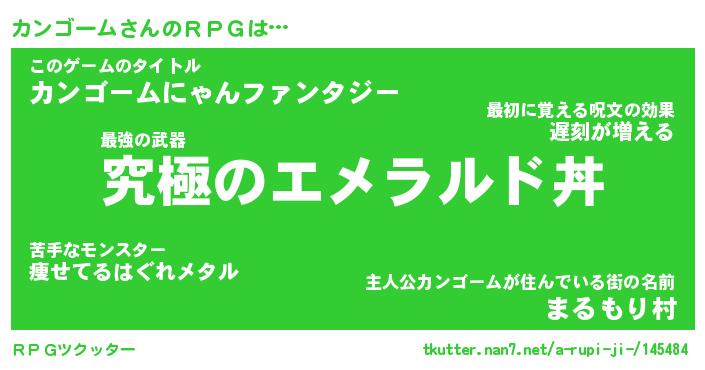 | 女子向けラノベタイトル風あだ名 | 『カンゴーム姫と円卓の騎士』 |