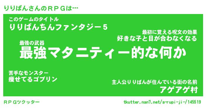 | 男性向けラノベタイトル風あだ名 | 『リリバンアートオンライン』 |