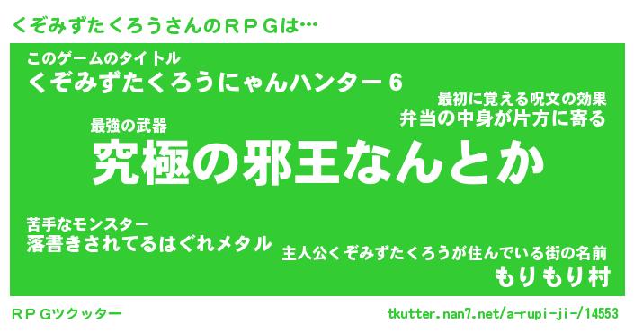 | 男性向けラノベタイトル風あだ名 | 『くぞみずたくろうの憂鬱』 |