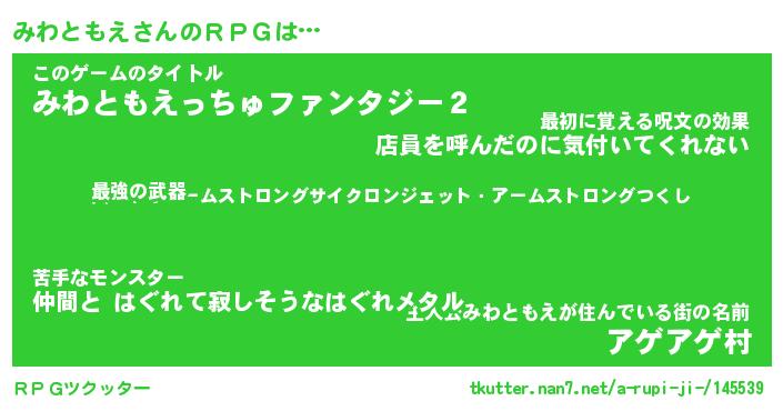 | 伝説のあだ名 | 『封印されし竜騎士みわともえ』 |