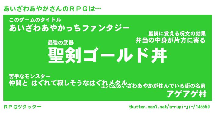 | 胡散臭い通販商品みたいなあだ名 | 『必ず成功する水晶球…その名も「あいざわあやか」』 |