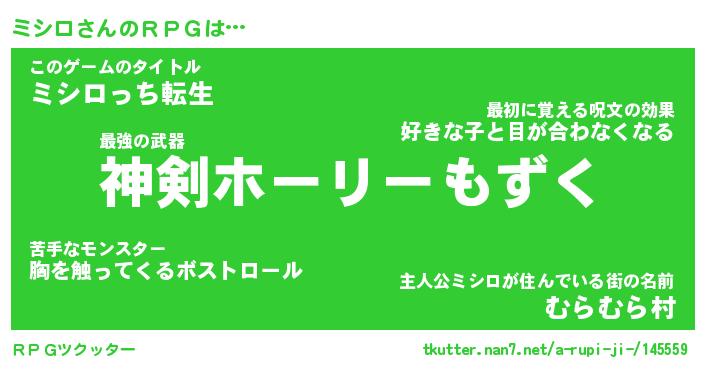 | 胡散臭い通販商品みたいなあだ名 | 『モテモテ間違いなし水晶球…その名も「ミシロ」』 |