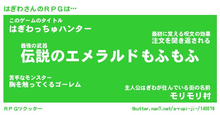 | ファンタジー風あだ名 | 『ハギフェル』『エターナルハギワー』 |