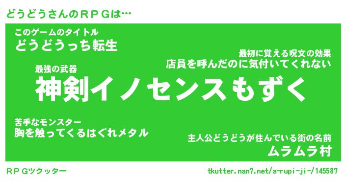 | 男性向けラノベタイトル風あだ名 | 『どうどうの憂鬱』 |