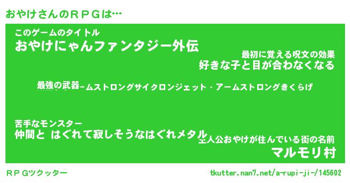 | ファンタジー風あだ名 | 『オヤフェル』『エターナルオヤケー』 |