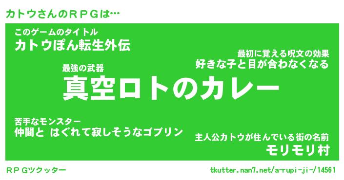 | ファンタジー風あだ名 | 『カトフェル』『エターナルカトウー』 |