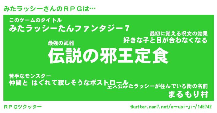| 男性向けラノベタイトル風あだ名 | 『みたラッシーの憂鬱』 |