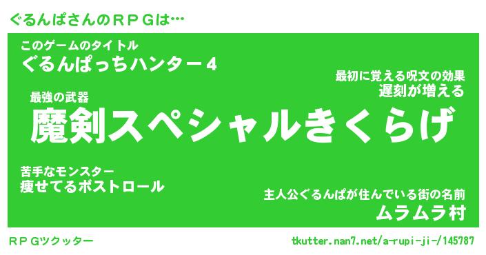 | ファンタジー風あだ名 | 『グルフェル』『エターナルグルンパー』 |