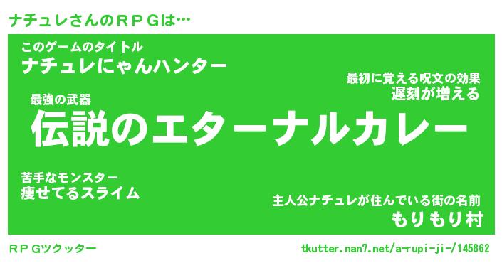 | ヒーロー風カッコイイあだ名 | 『スーパーナチュレ』『黄金騎士ナチ』 |