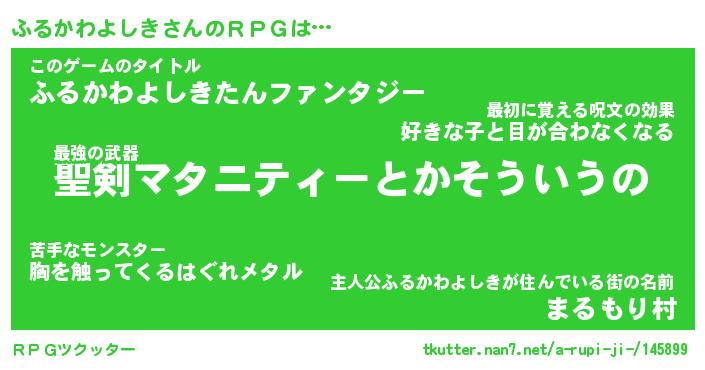 | 男性向けラノベタイトル風あだ名 | 『ふるかわよしきの憂鬱』 |