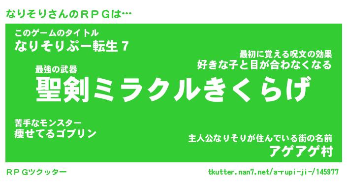 | 男性向けラノベタイトル風あだ名 | 『なりそりの憂鬱』 |