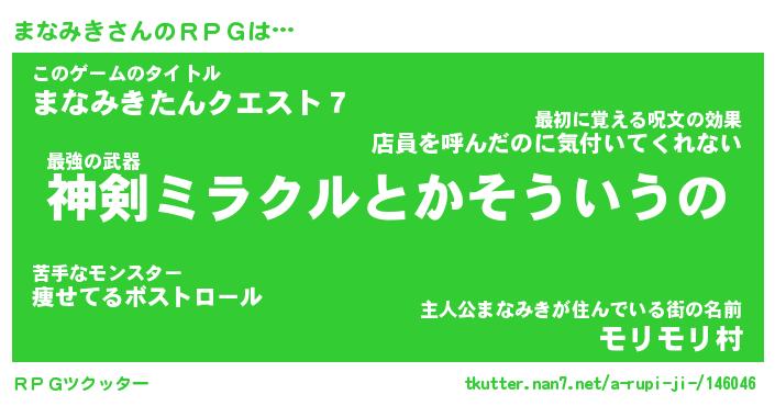 | ファンタジー風あだ名 | 『マナフェル』『エターナルマナミキー』 |
