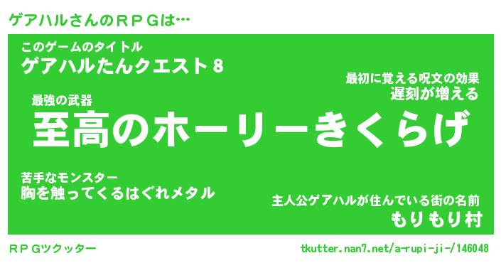 | 男性向けラノベタイトル風あだ名 | 『ゲアハルアートオンライン』 |