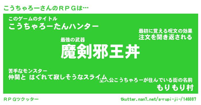 | 男性向けラノベタイトル風あだ名 | 『こうちゃろーの憂鬱』 |