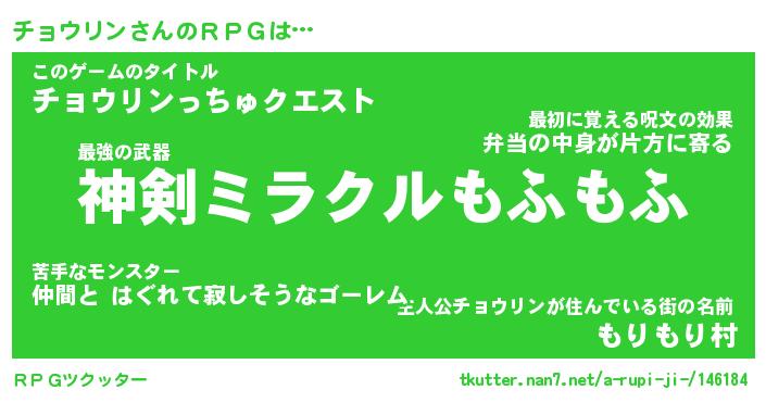 | 料理風あだ名 | 『節約★チョウリンと油揚げの玉子丼』 |