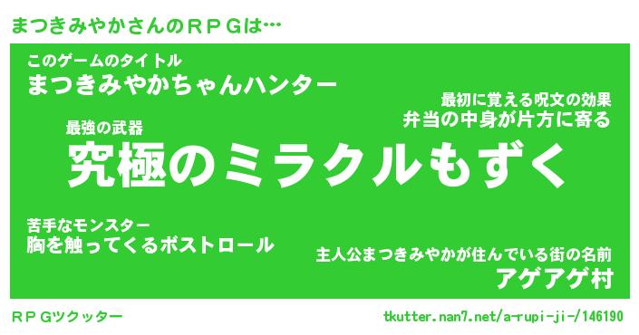 | 男性向けラノベタイトル風あだ名 | 『マツキミヤカアートオンライン』 |