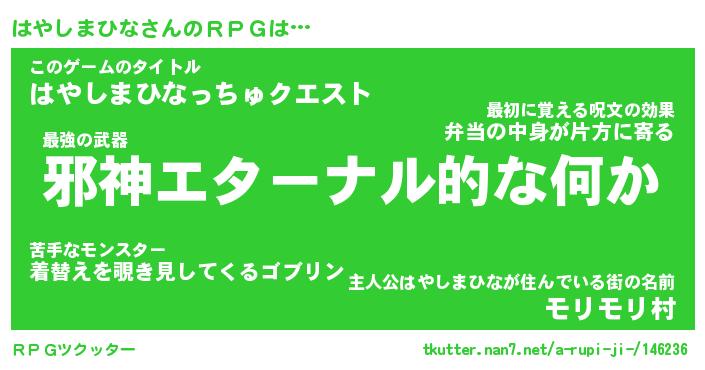 | 男性向けラノベタイトル風あだ名 | 『ハヤシマヒナアートオンライン』 |