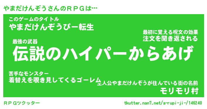 | ヒーロー風カッコイイあだ名 | 『スーパーヤマダケンゾウ』 |