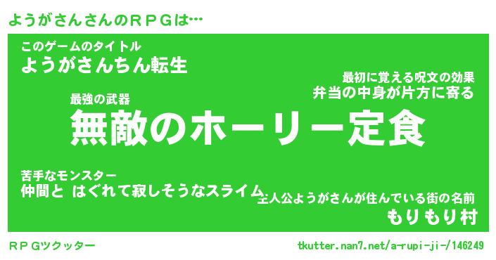 | ファンタジー風あだ名 | 『ヨウフェル』『エターナルヨウガサンー』 |
