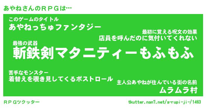 | ファンタジー風あだ名 | 『アヤフェル』『エターナルアヤネー』 |