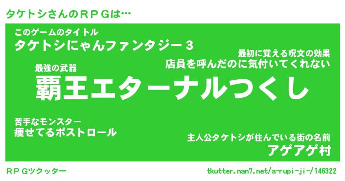 | ファンタジー風あだ名 | 『タケフェル』『エターナルタケトシー』 |