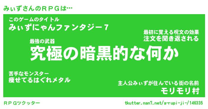 | 男性向けラノベタイトル風あだ名 | 『みぃずの憂鬱』 |