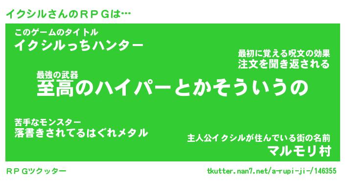 | 意味不明あだ名 | 『ペロリンイクシル』『永久保存イクシル』 |
