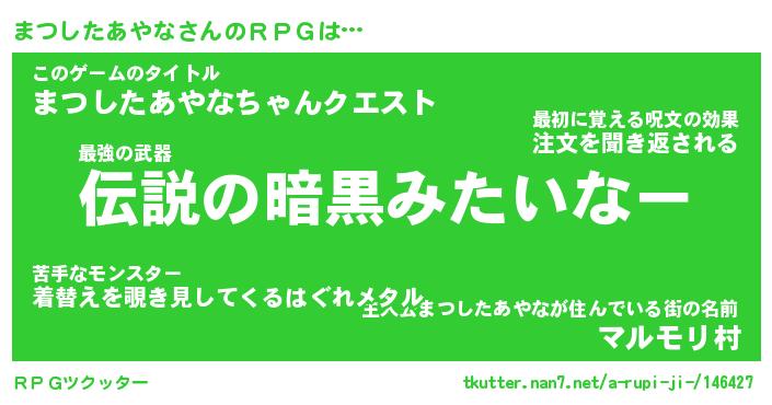 | 恥ずかしいあだ名 | 『プリティーまつしたあやな』『まつちん』 |
