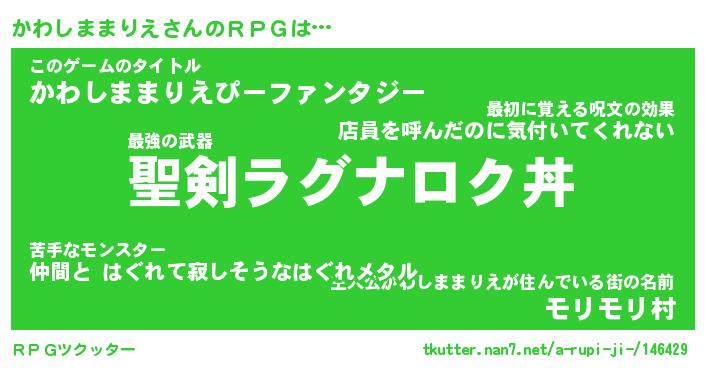 | 伝説のあだ名 | 『伝説の竜騎士かわしままりえ』 |