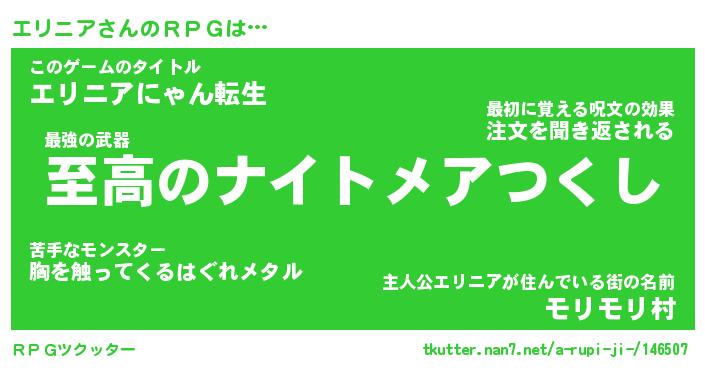 | 男性向けラノベタイトル風あだ名 | 『エリニアアートオンライン』 |