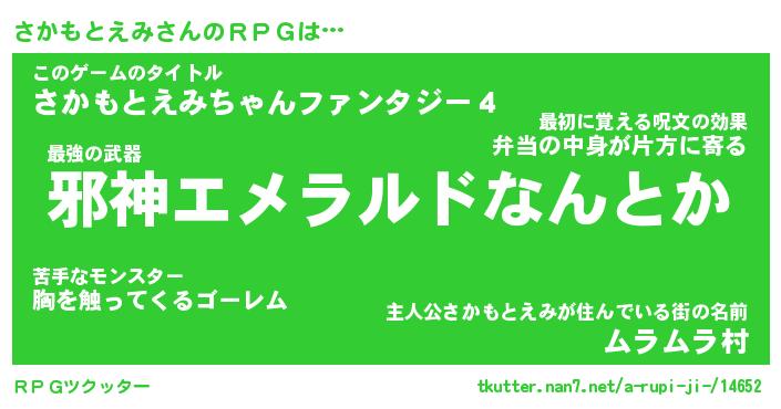 | 胡散臭い通販商品みたいなあだ名 | 『億万長者になれる霊験あらたかなお札…その名も「さかもとえみ」』 |
