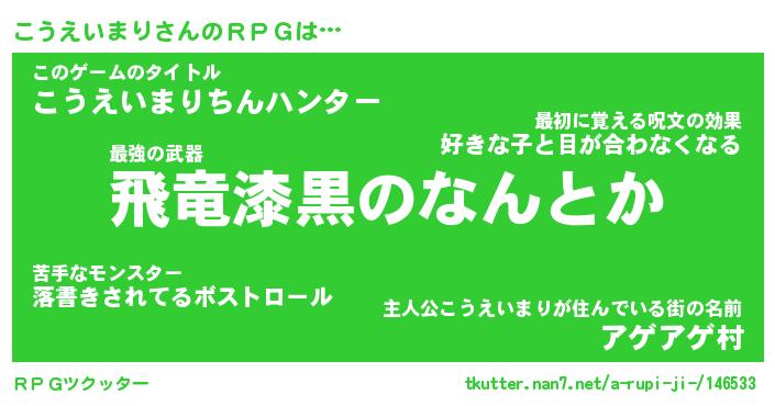 | 男性向けラノベタイトル風あだ名 | 『コウエイマリアートオンライン』 |
