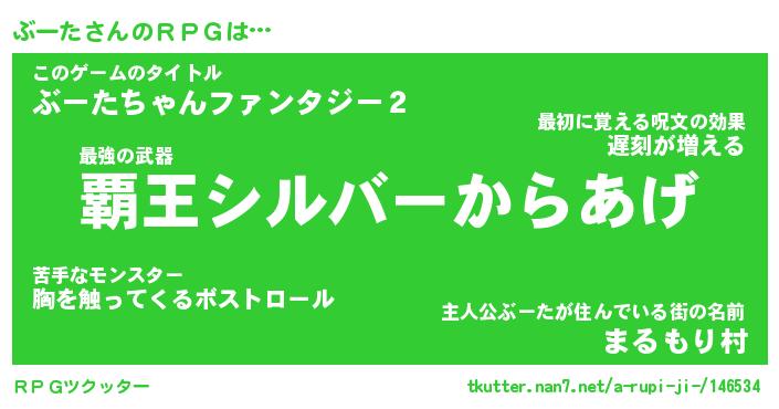 | 男性向けラノベタイトル風あだ名 | 『ブータアートオンライン』 |