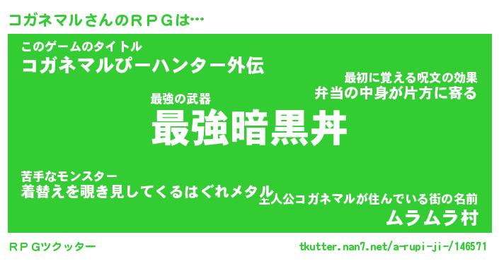 | ファンタジー風あだ名 | 『コガフェル』『エターナルコガネマルー』 |
