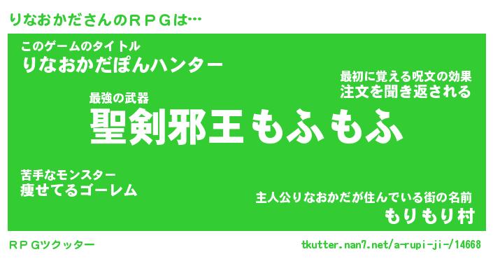 | ファンタジー風あだ名 | 『リナフェル』『エターナルリナオカダー』 |