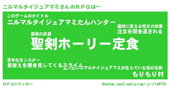 | ヒーロー風カッコイイあだ名 | 『スーパーニルマルタイジュアマミ』 |
