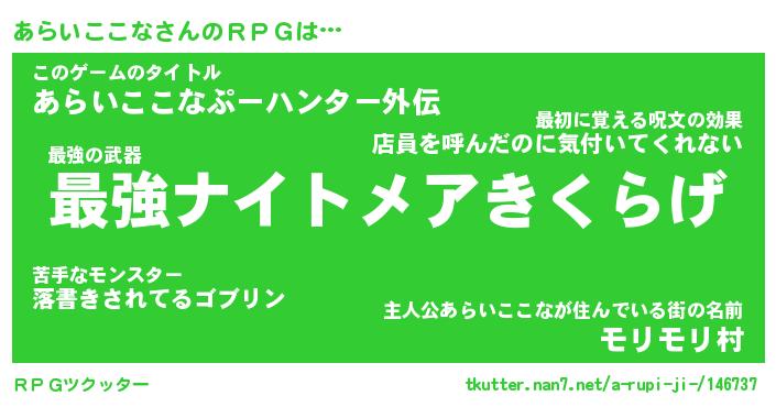 | 男性向けラノベタイトル風あだ名 | 『アライココナアートオンライン』 |