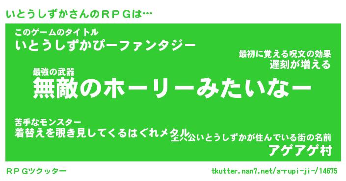 | 男性向けラノベタイトル風あだ名 | 『イトウシズカアートオンライン』 |