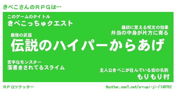 | ファンタジー風あだ名 | 『キペフェル』『エターナルキペコー』 |