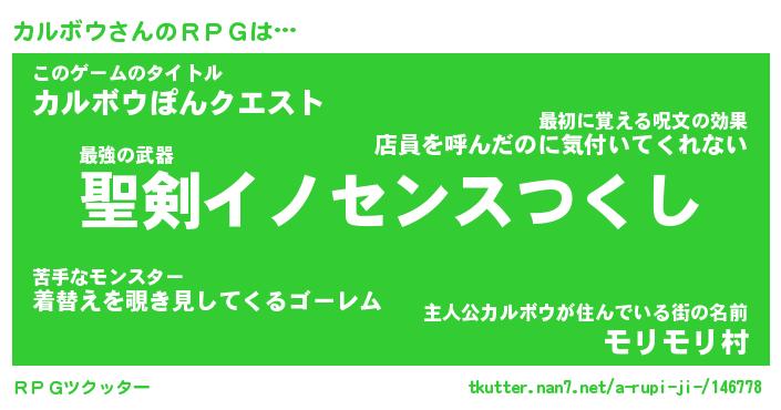 | 男性向けラノベタイトル風あだ名 | 『カルボウの憂鬱』 |