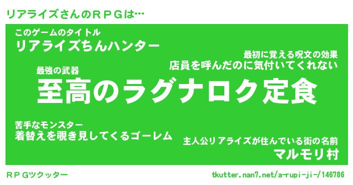 | ファンタジー風あだ名 | 『リアフェル』『エターナルリアライズー』 |