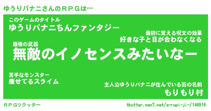 | 伝説のあだ名 | 『封印されしスナイパーゆうりバナニ』 |