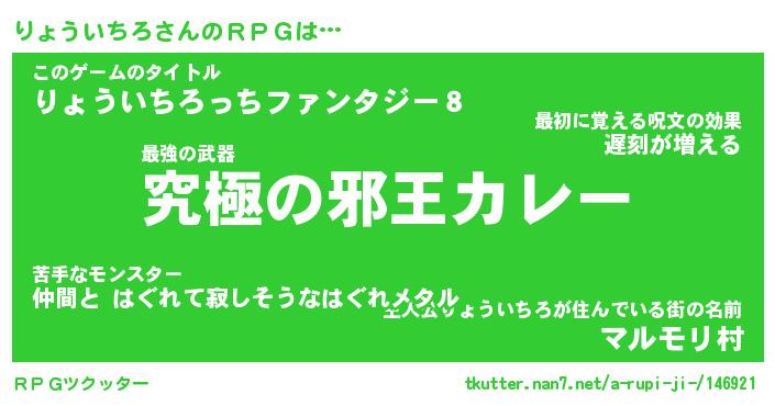 | 男性向けラノベタイトル風あだ名 | 『りょういちろの憂鬱』 |