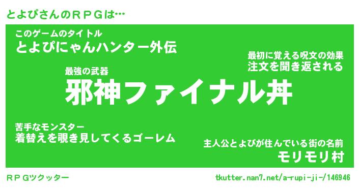 | ファンタジー風あだ名 | 『トヨフェル』『エターナルトヨピー』 |