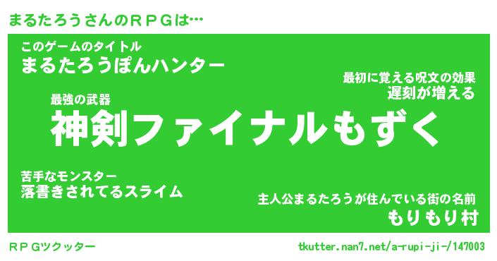 | 男性向けラノベタイトル風あだ名 | 『まるたろうの憂鬱』 |